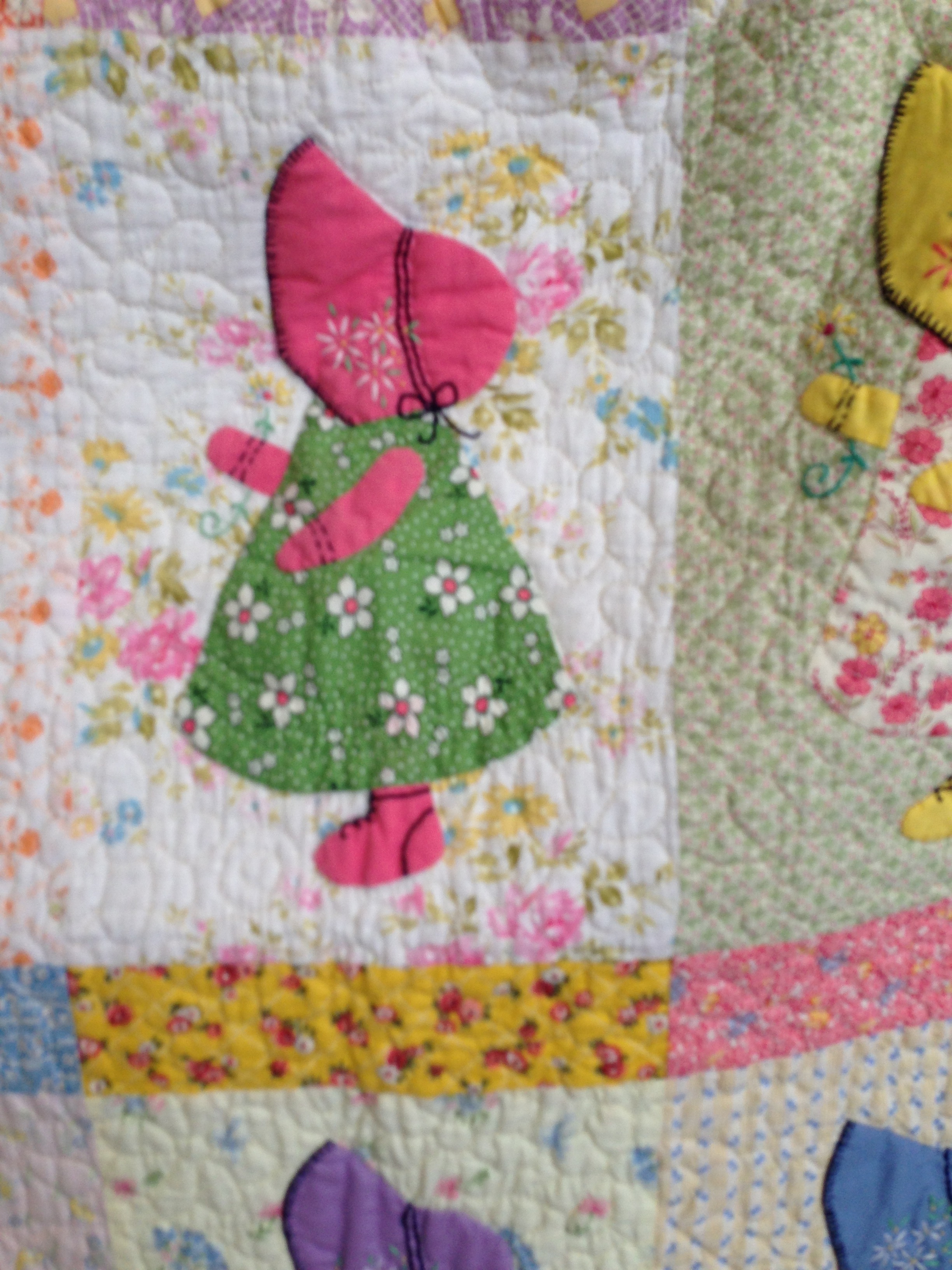 The fabrics in this quilt appear to be very well co-ordinated. The pretty, little floral patterns match up with a complimentary solid colour. On studying this quilt, I wonder if it is an early example of a kit quilt, which were available at this time. Well, I will have lots of time to examine the fabrics and think about the original quilt maker when I undertake the task of hand quilting it.